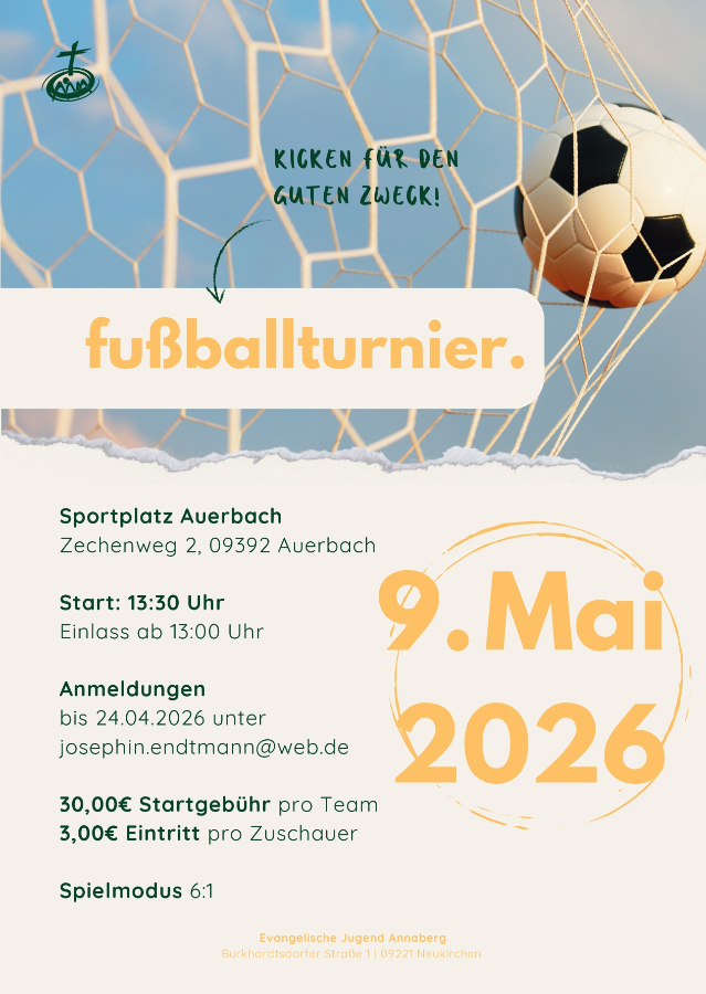 - kicken für den guten Zweck: wir sammeln Spenden für einen gemeinnützigen Zweck - sucht euch gerne einen Sponsor und/oder gebt etwas in die Kollekte an dem Abend.